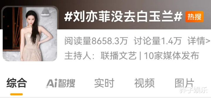 刘亦菲没去白玉兰这话题都能上热搜,受益方是谁不用多想。